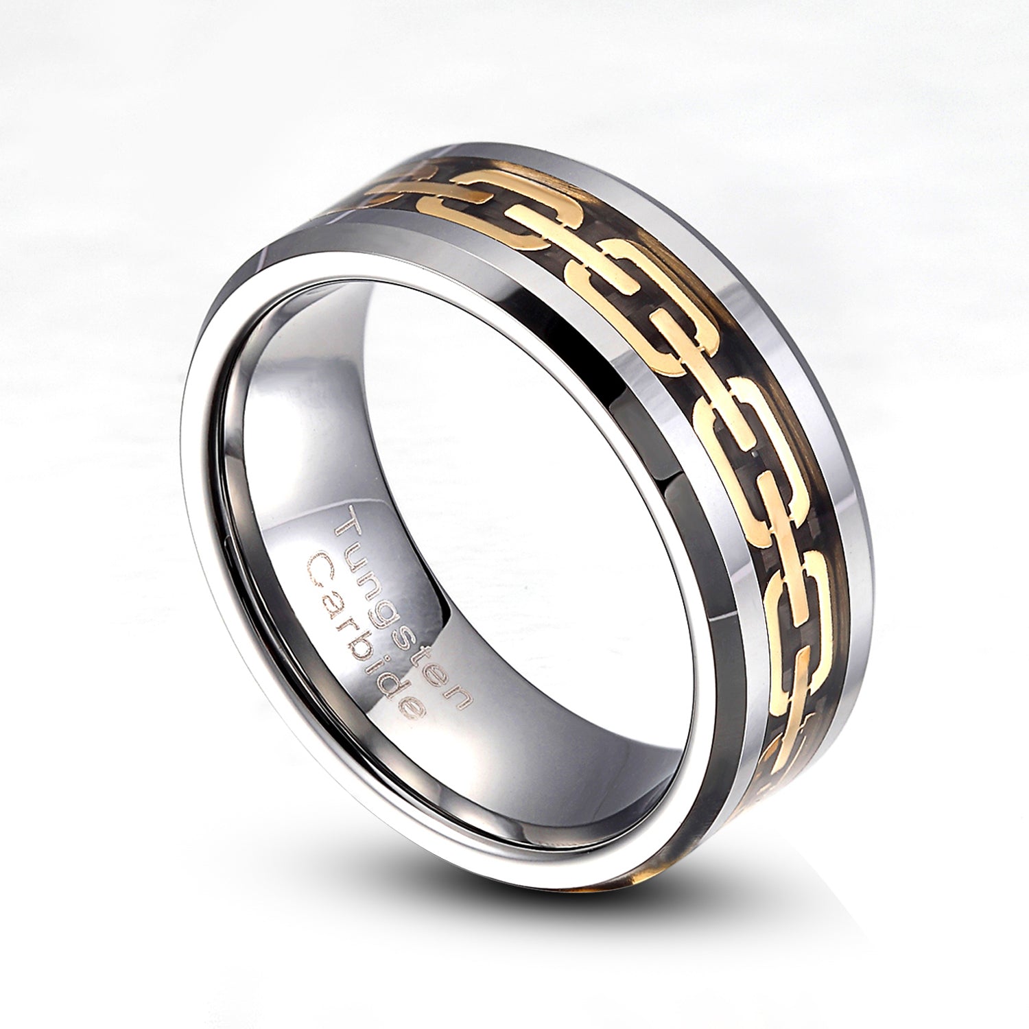 Tungsten Carbide is the one of hardest metals. It is polished to a perfect mirror finish using diamonds as tool. The metal of Tungsten is about 4 times harder than titanium, 5 times harder than tool steel and 10 times harder than 18K Gold. As you know gold, platinum and titanium rings are easy to have varying degrees of scratching, notching and surface marks. Since Tungsten is the hardest of metals, then the Tungsten ring will maintain the original, beautiful, shiny polished finish
