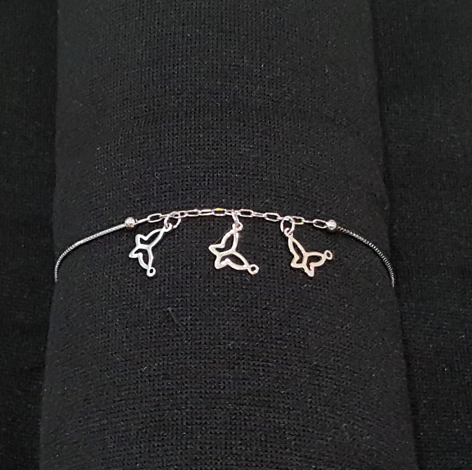 US Seller .925 Sterling Silver Three Butterfly Charm on Box Bracelet SY92