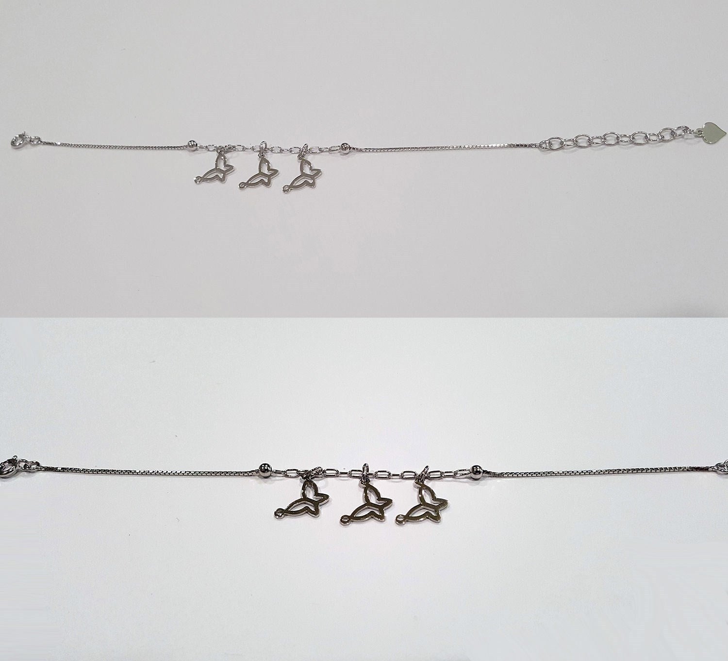 .925 Sterling Silver Three Butterfly Charm on Box Bracelet SY92