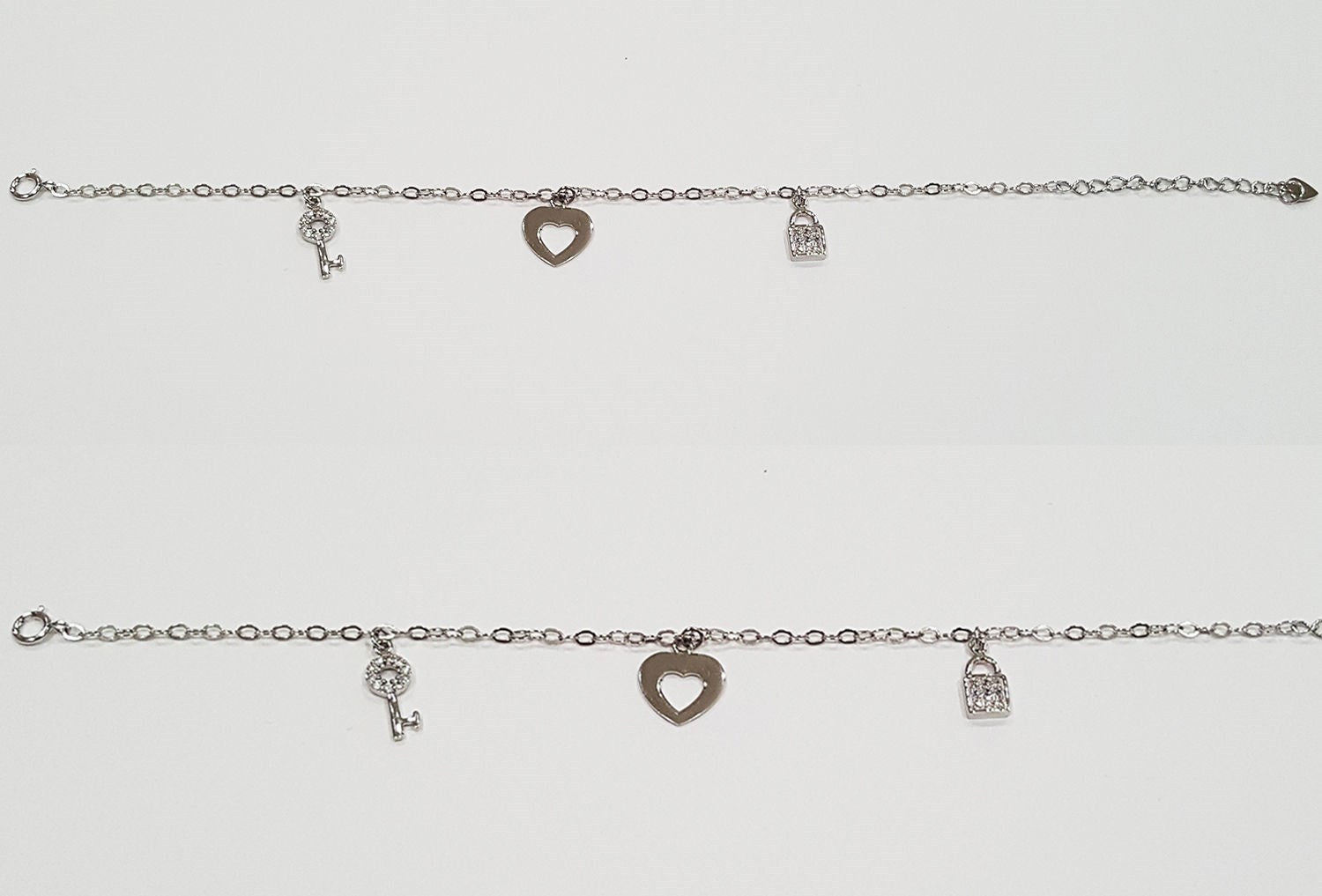 .925 Sterling Silver Heart, Lock and Key Charm Bracelet SY102