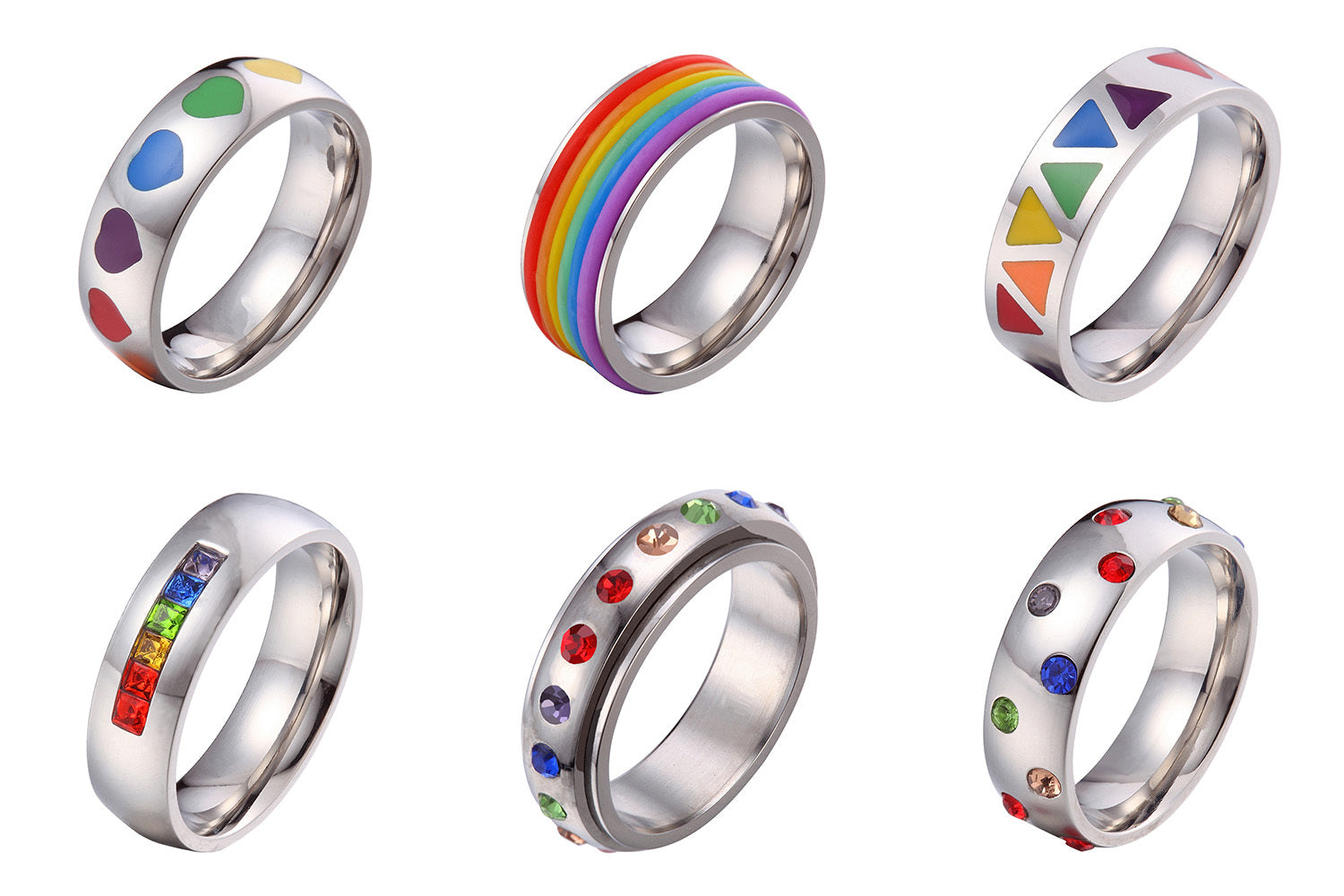 US Seller- LGBT Gay Pride Couple Wedding Rainbow 6MM Stainless Steel Rings HS25