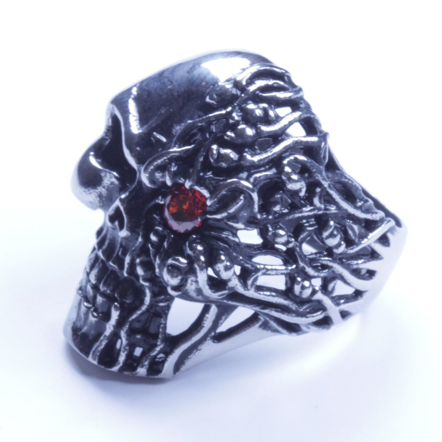 US Seller Men's Silver Stainless Steel Skull With Red CZ Eye Ring Size 8-14 SR54